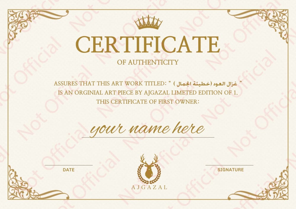 عمل فني من نسخة واحدة ، مع شهادة اصالة