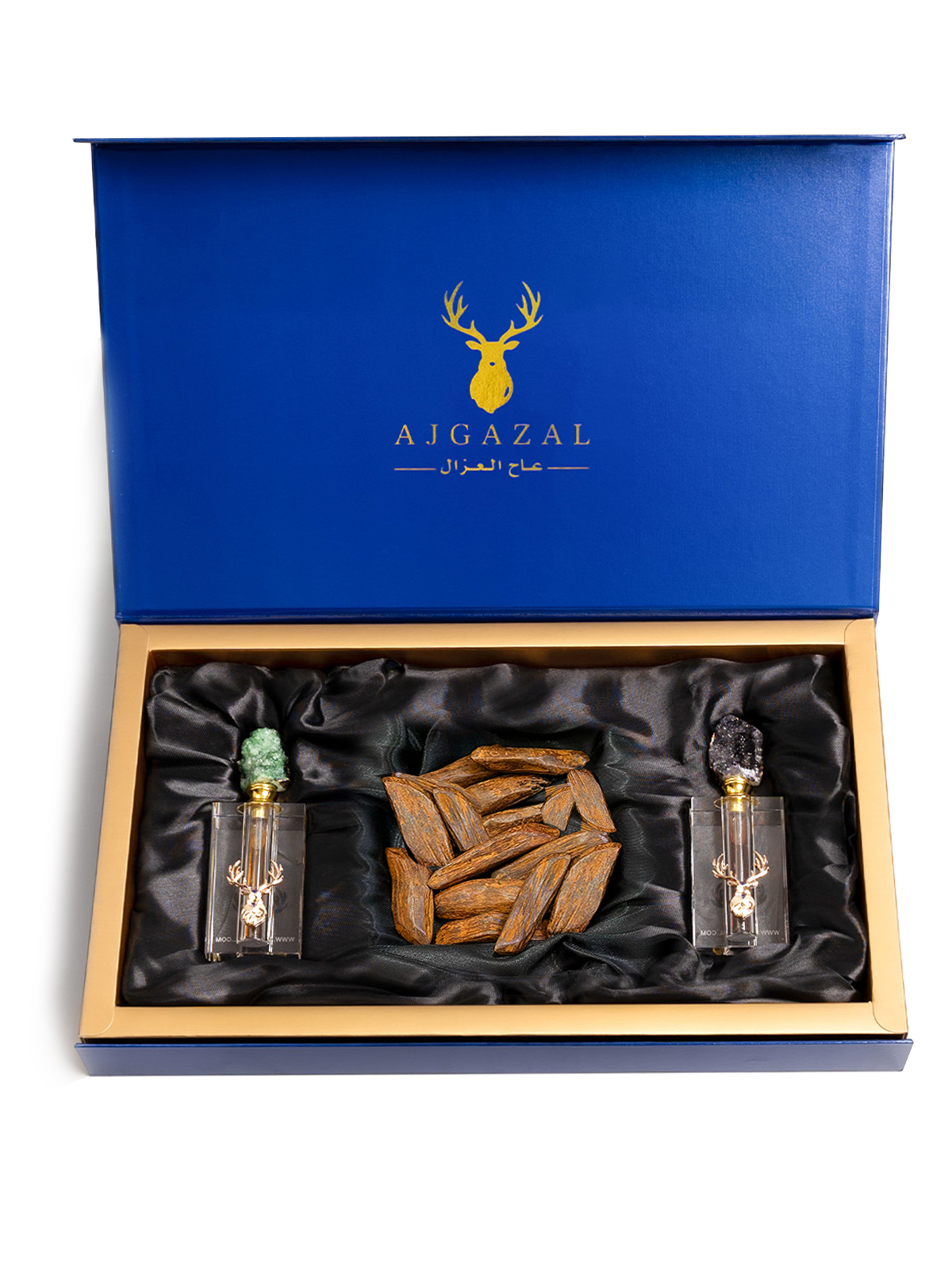 لإضافة لمسة من الفخامة، طقم المسك المنوع المزخرف بالأحجار الكريمة هو هدية مثالية. يجمع بين الروائح الفاخرة والجمال البصري للأحجار الكريمة.
